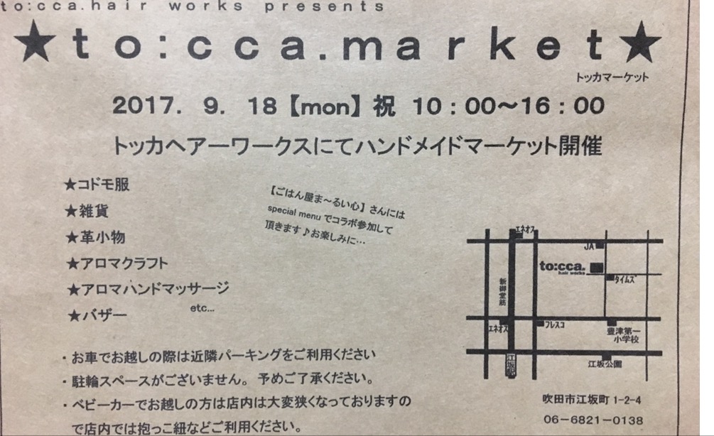 ハンドメイドマーケットを開催されます。(10:00〜16:00)