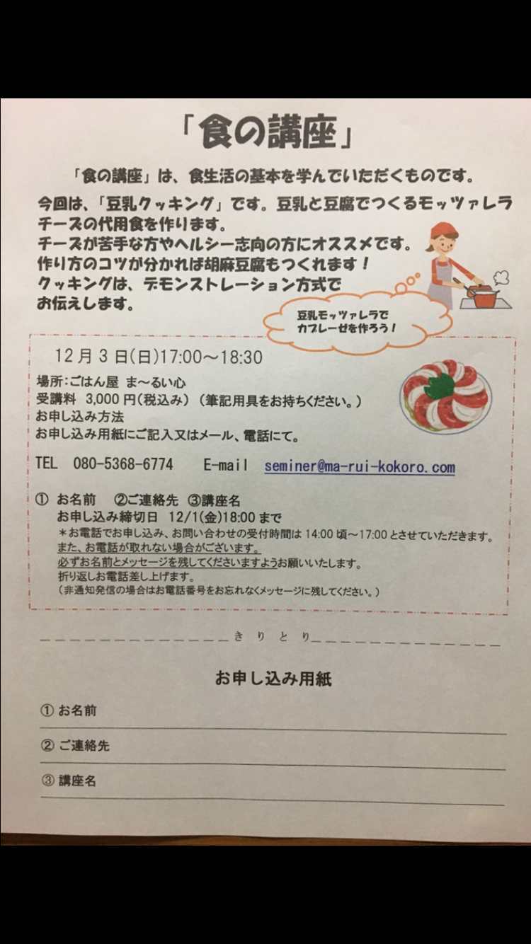 12月の「食の講座」のお知らせ